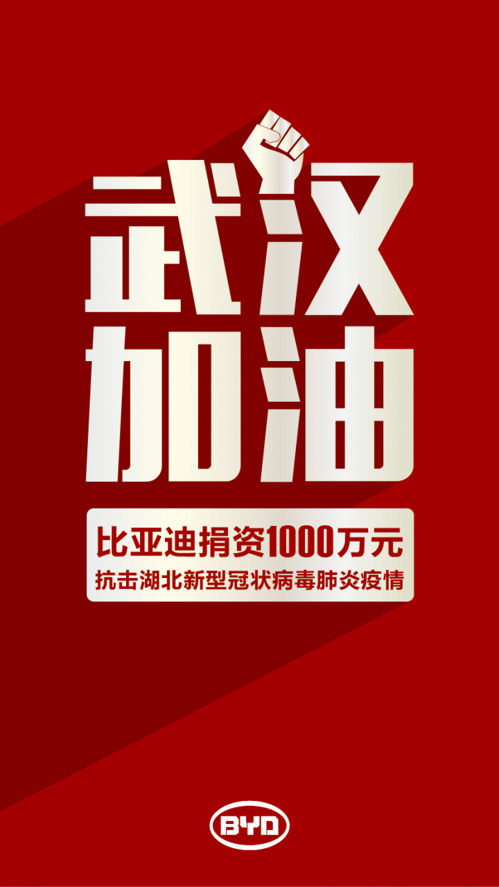 1月28日音讯,比亚迪股份有限公司决议:经过比亚迪慈悲基金会向湖北省慈悲总会捐献爱心资金人民币1000万元,用于支撑防控新式冠状病毒感染肺炎疫情。比亚迪将与全国人民一道,打赢这场疫情防控阻击战!